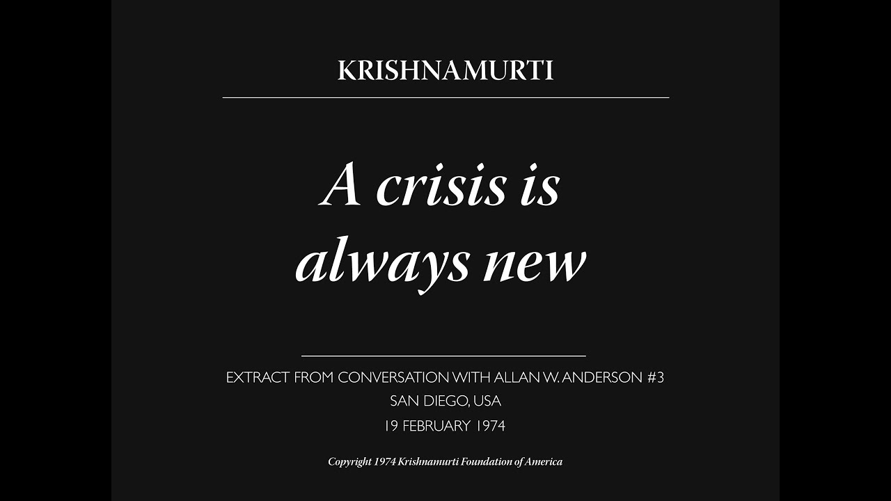 SUBTITLES AVAILABLE IN: ENGLISH A crisis is always new Extract from the third conversation with Allan W. Anderson in San Diego, 1974. — This channel is managed by the Krishnamurti