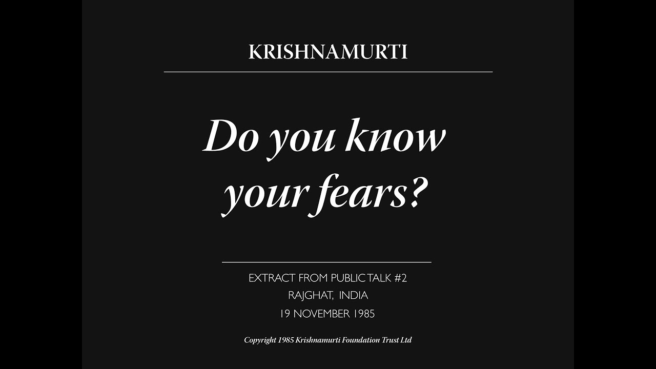SUBTITLES AVAILABLE IN: ENGLISH Do you know your fears? | J. Krishnamurti Extract from the second talk in Rajghat, 1985. — This channel is managed by the Krishnamurti Foundation Trust​​,